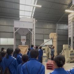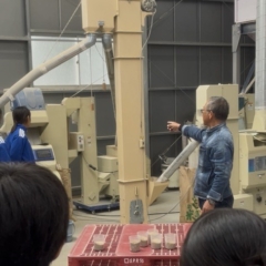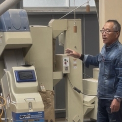 しかしながらこの日はあいにくの雨模様で、予定していた稲刈り体験は中止に…。 そこで、鈴木さまのご提案により、お米の「乾燥」から「袋詰め」までの工程を見学させていただくことになりました。