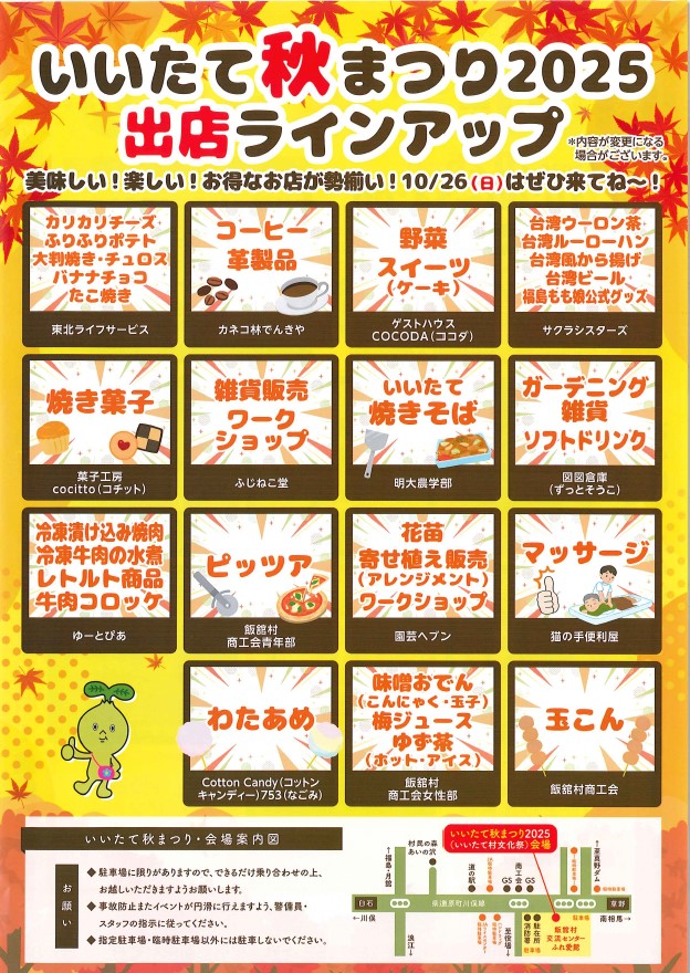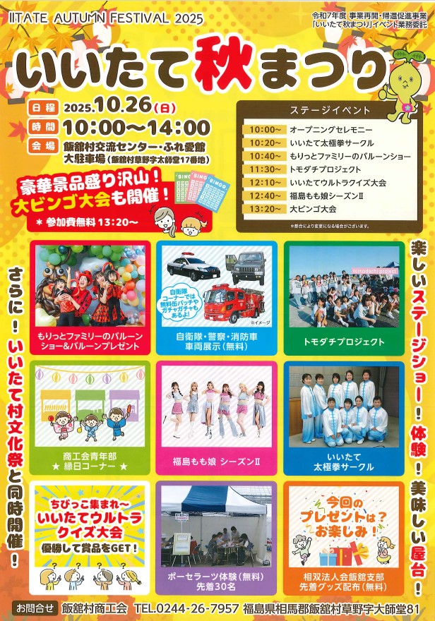 飯舘村商工会主催で、「いいたて秋まつり」が開催されます。