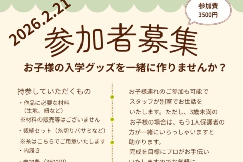 お子さまの入園・入学グッズを一緒に作りませんか?