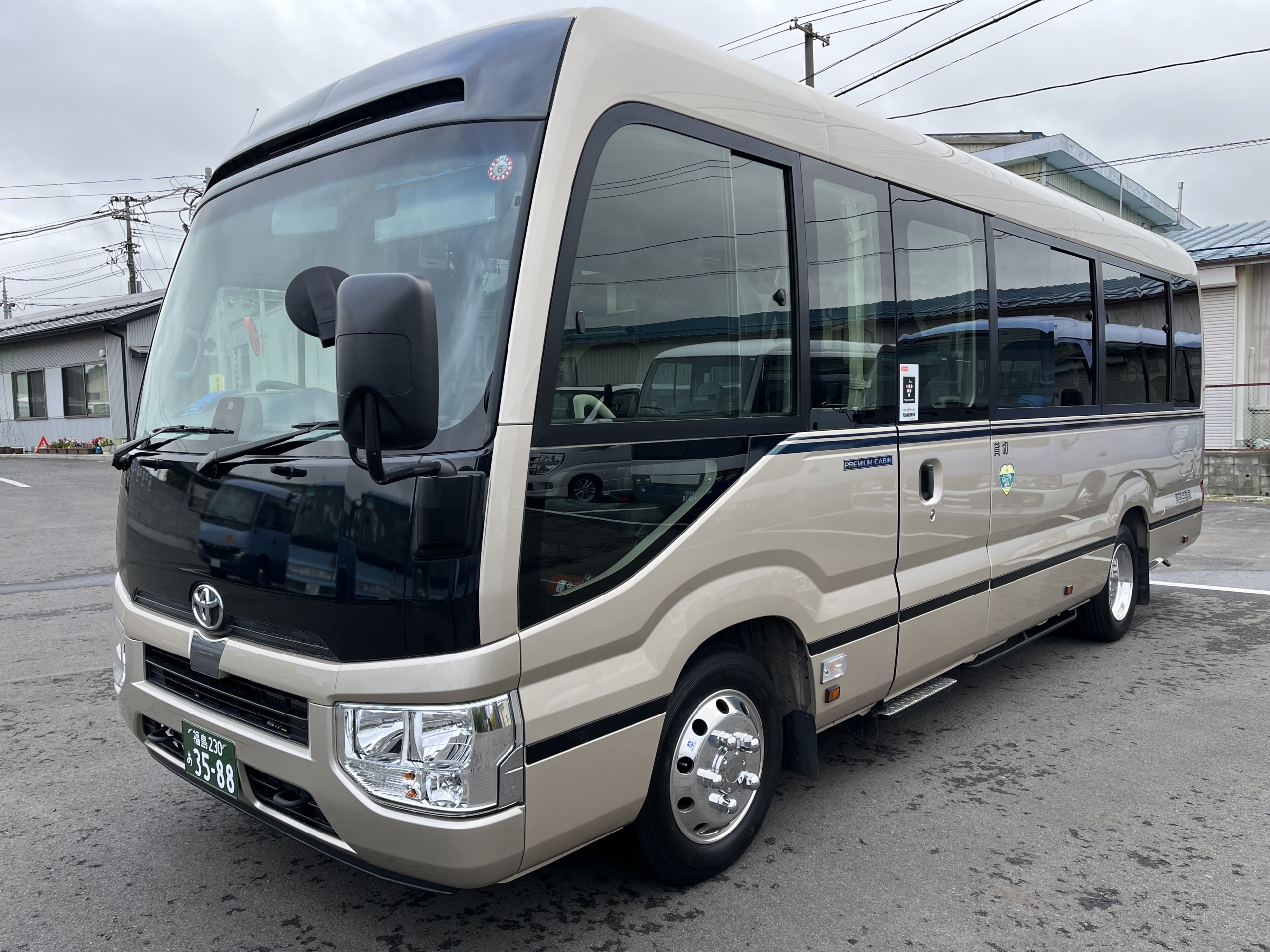 ・通常のマイクロバスよりもシート数を減らしており、豪華な内装と広い座席が特徴です。冷蔵庫、テレビに加えて、USBポートも用意されているため快適な時間をお過ごしできます。