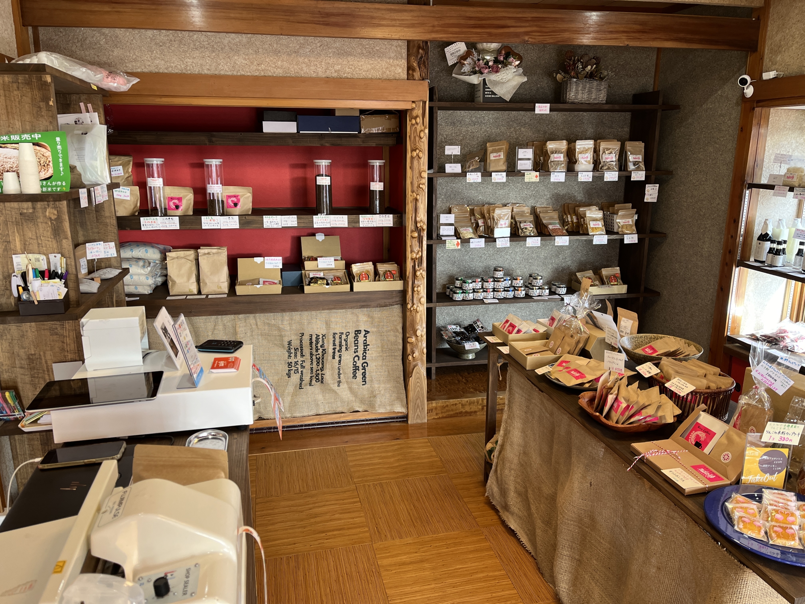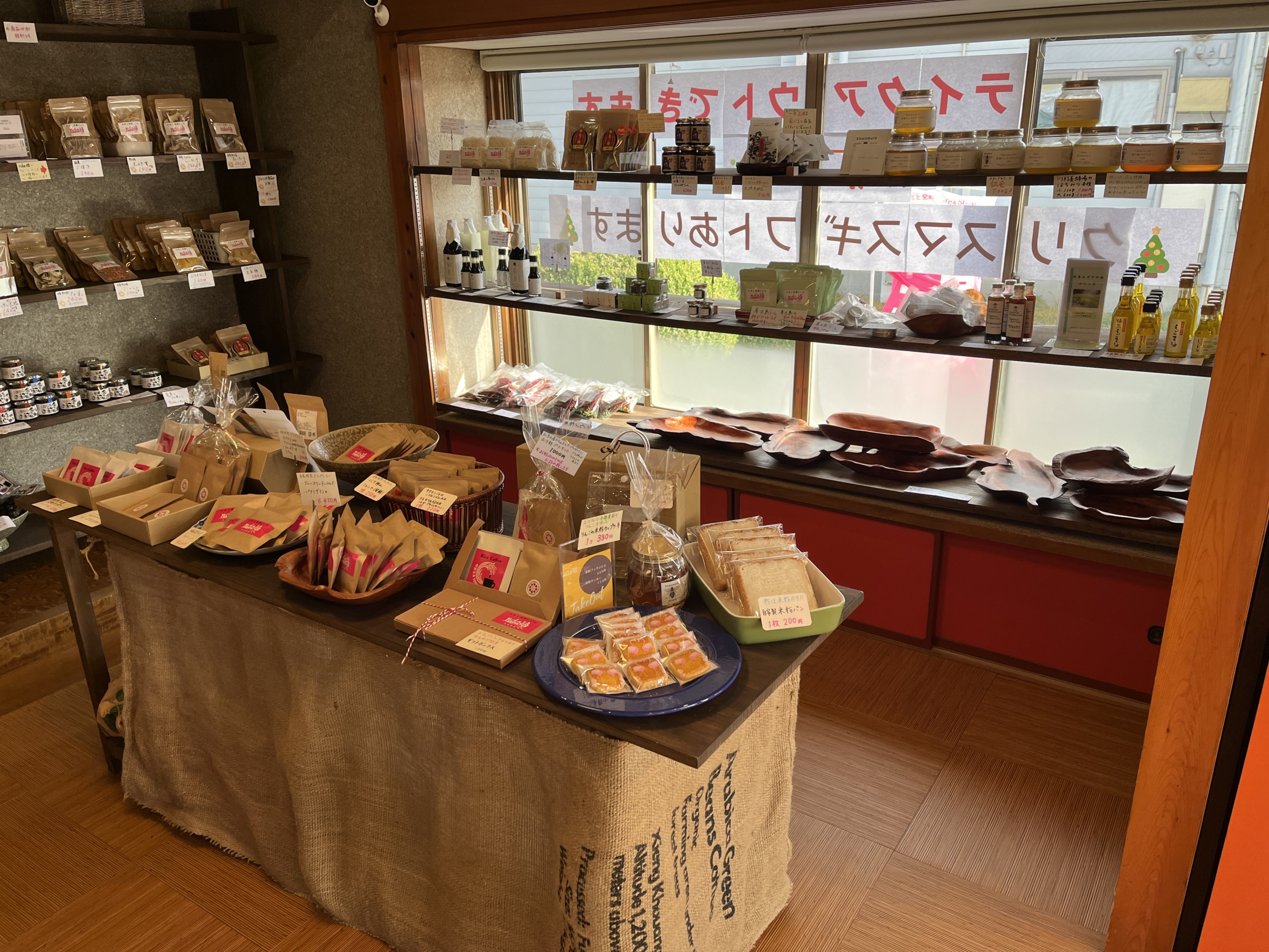 こちらは自家焙煎の玄米コーヒーをはじめ世界各国のコーヒー、甘酒、米粉パン、米粉カップケーキ等の自家製品、