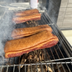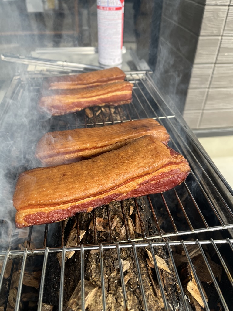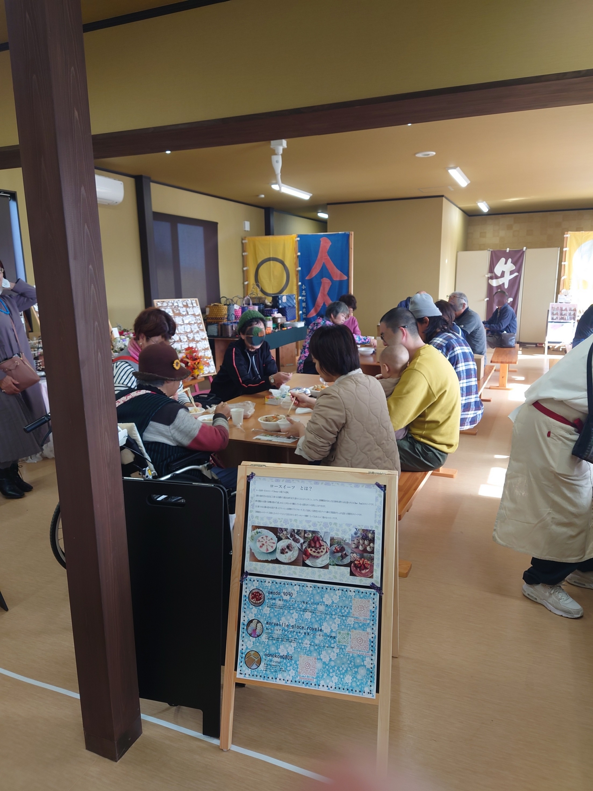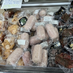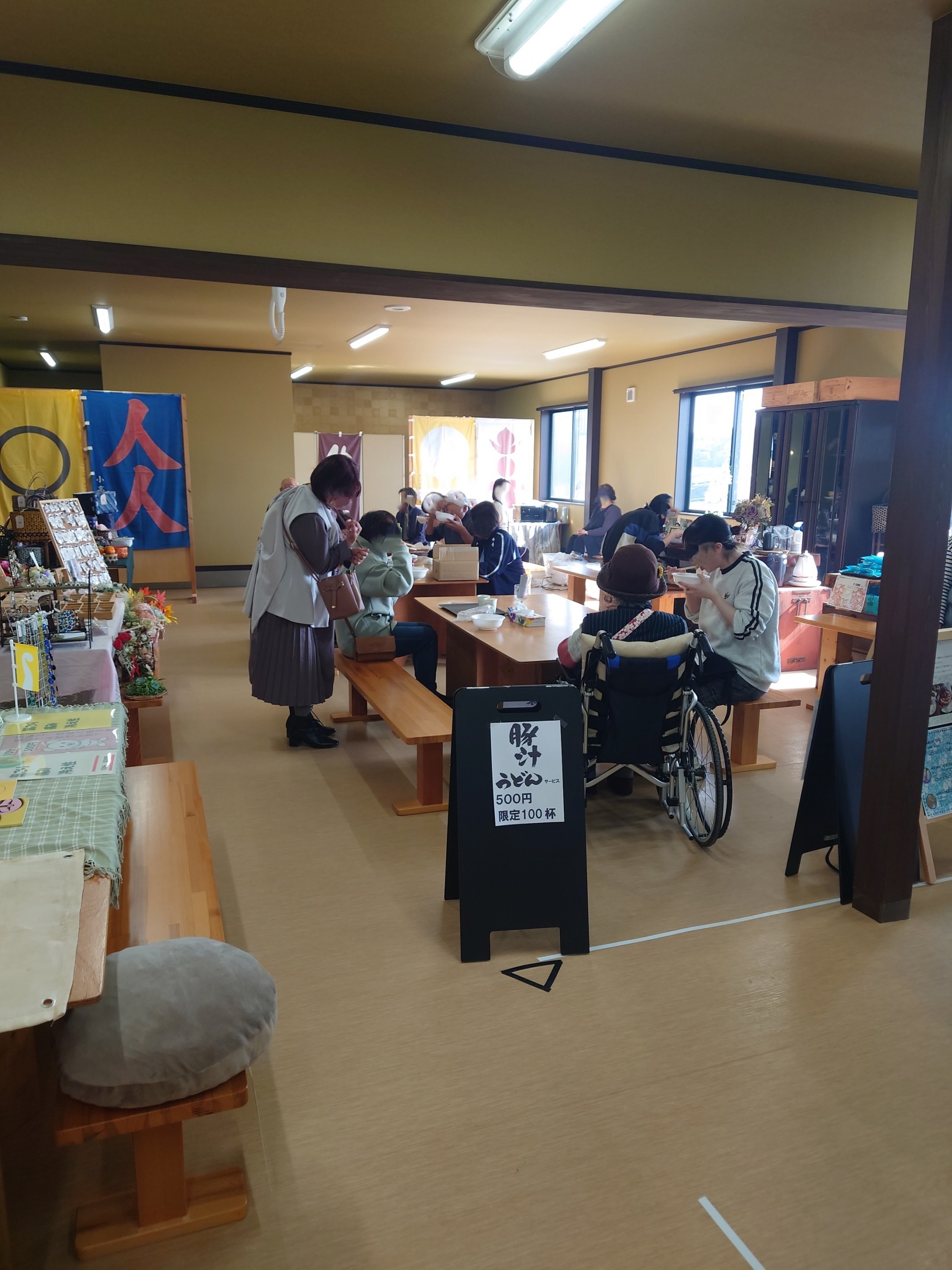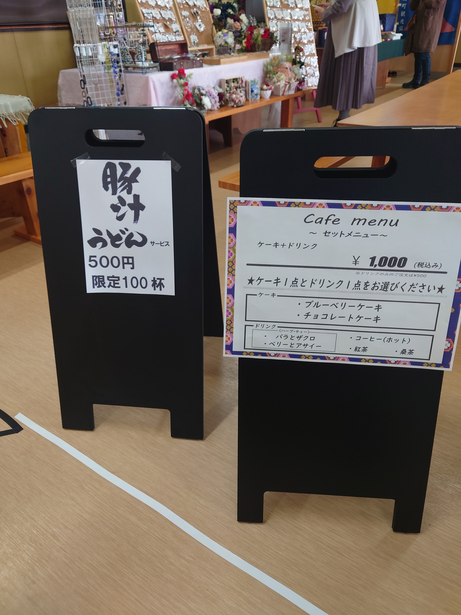 店舗隣の工場で作られた種類豊富なハム、ベーコン、ソーセージは飛ぶように売れ、買い物カゴをいっぱいにしたお客様は笑顔に溢れとても満足そうでした。ハンドメイド品販売会やロースイーツを提供するカフェコーナー、豚汁うどん販売、療術による温熱刺激出張所など、食品販売以外でも楽しい模擬店が充実していたため、ついつい長居してしまいました。大盛況に終わったこの工場直売会。次回開催が今からとても楽しみです。