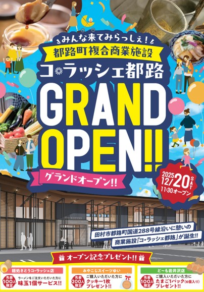 12月20日(土)都路町岩井沢に複合商業施設「コ・ラッシェ都路」がグランドオープンします。