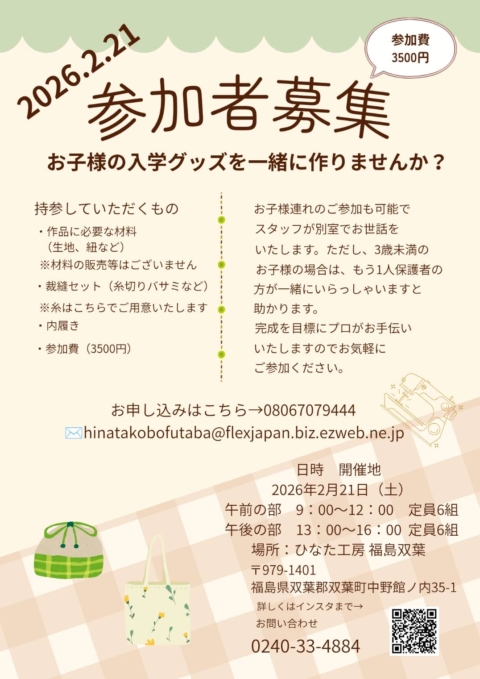 お子さまの入園・入学グッズを一緒に作りませんか?