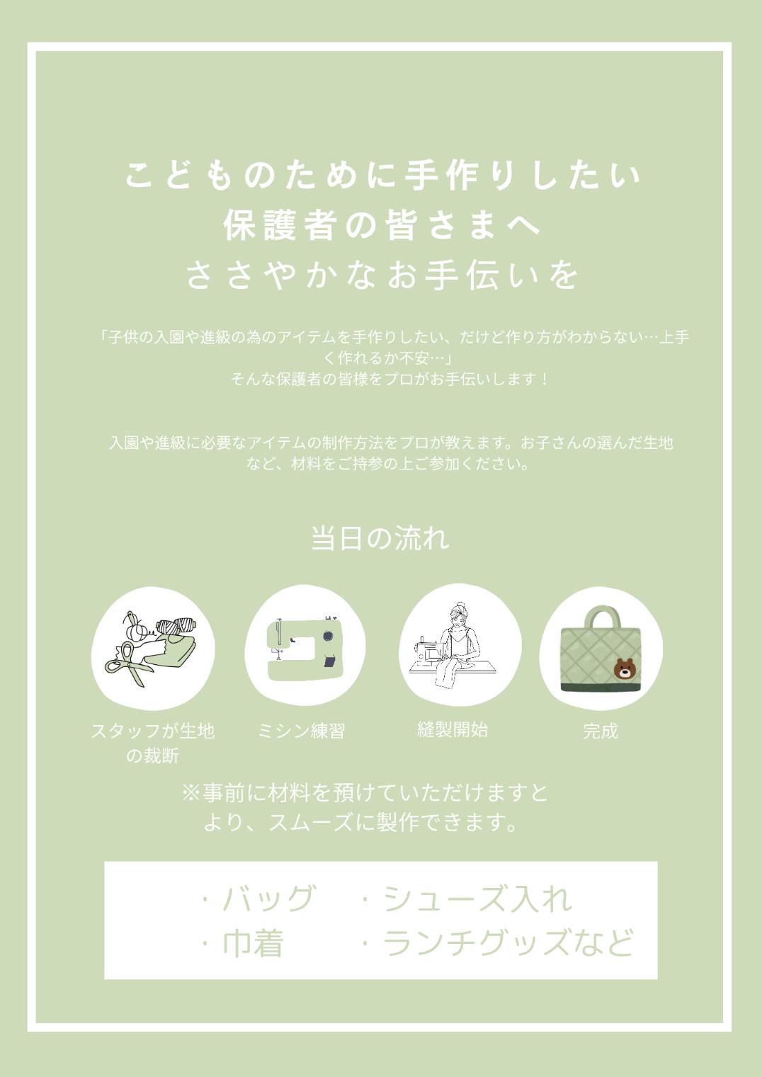 お子さまの入園・入学グッズを一緒に作りませんか?