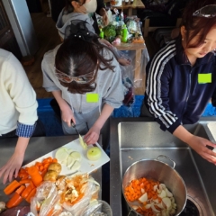 皆で協力して作ったご飯は、作業の疲れを吹き飛ばす最高の味!🥟🍛