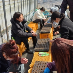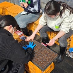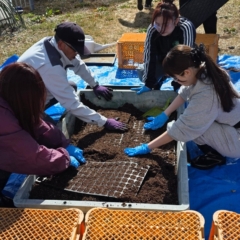苗床を準備し、保湿・保温の工夫を学びながらの植え付け。土の温もりを肌で感じます。