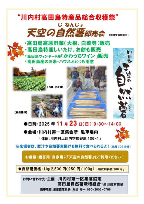 「川内村高田島特産品総合収穫祭」開催のお知らせ