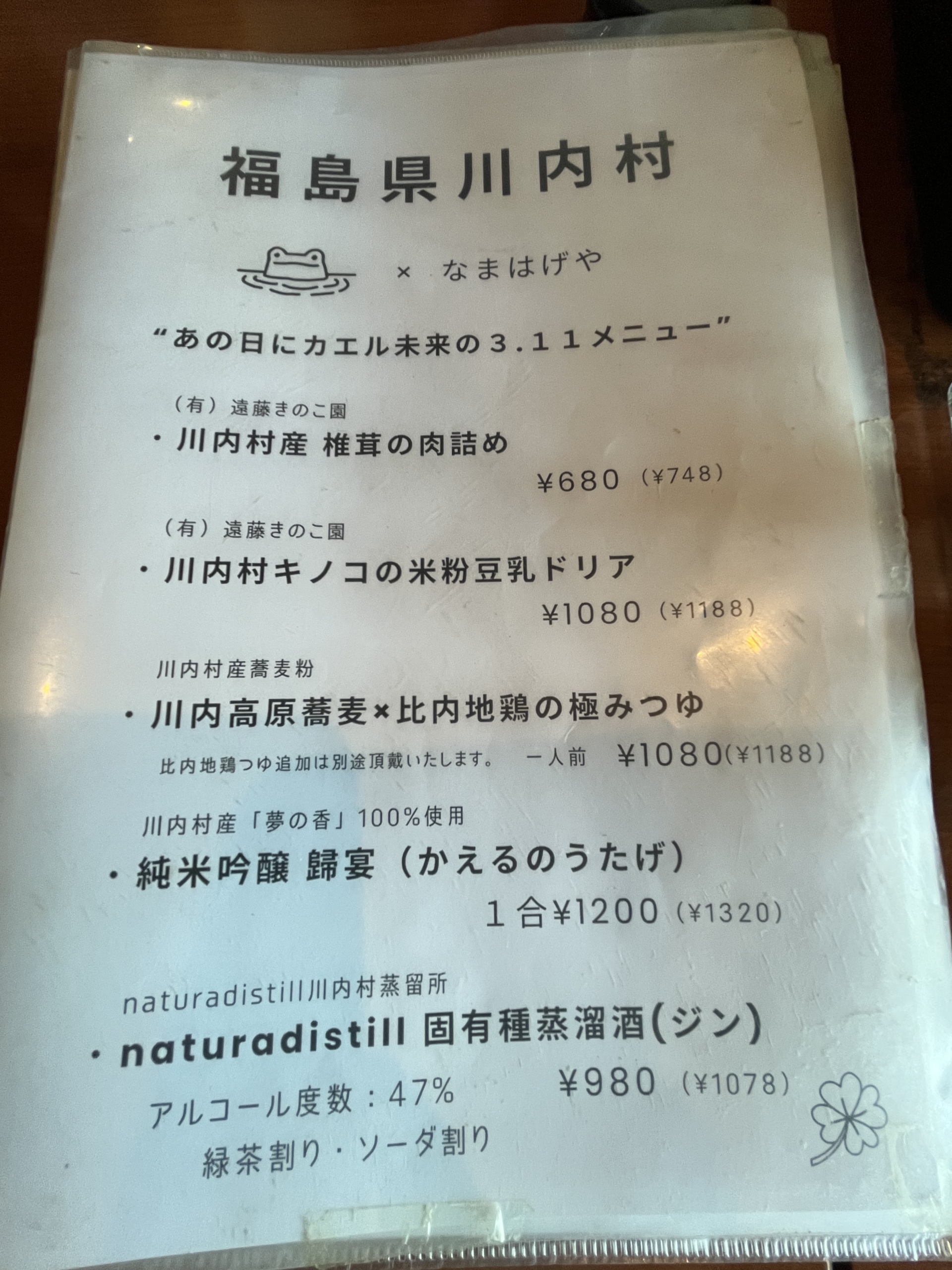 東京都町田市の飲食店「なまはげや」で川内村を味わおう🍄🍜🍶