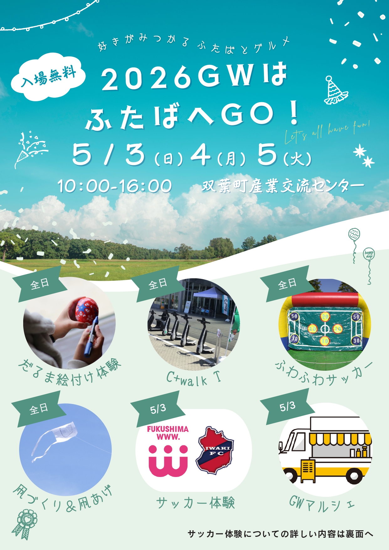 2026年5月3日~5日の期間限定の3日間、双葉町産業交流センター(F-BICC)にて、体験型イベントが開催されます。