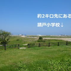 請戸小学校は、海から内陸に約300メートルのところに建っています。