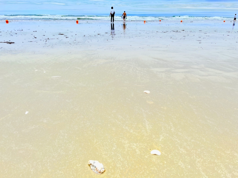 薄磯海岸は、綺麗な海水と砂浜で一面ガラス張りのように空模様を映し出していました。