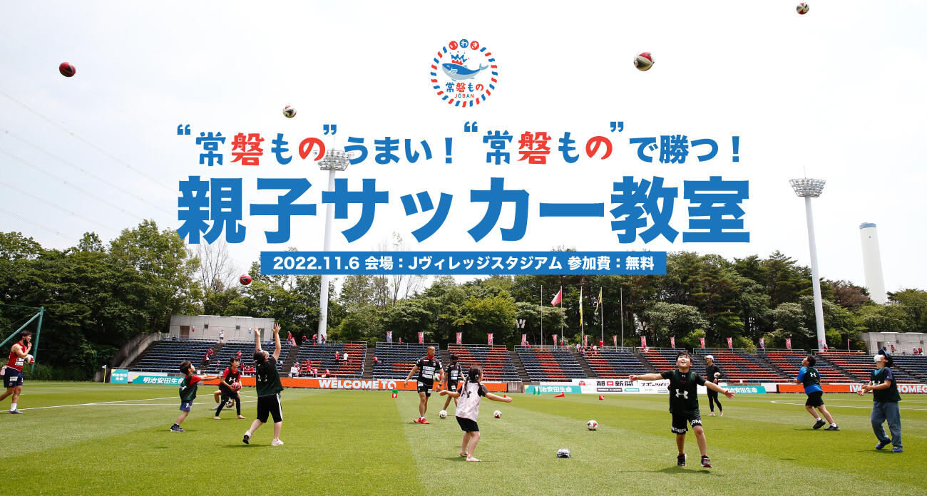 今回、11月6日(日)のホームゲーム 鹿児島ユナイテッドFC戦の前座イベントとして、「”常磐もの”うまい!”常磐もの”で勝つ! 親子サッカー教室」を開催し、5歳〜小学6年生とその保護者を対象に同じフィールドでいわきFC選手と一緒にプレーができます。