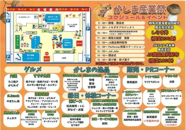 2025年10月19日(日)に南相馬市鹿島区のかしま交流センター前特設会場において「2025かしま産業祭」が開催されます。