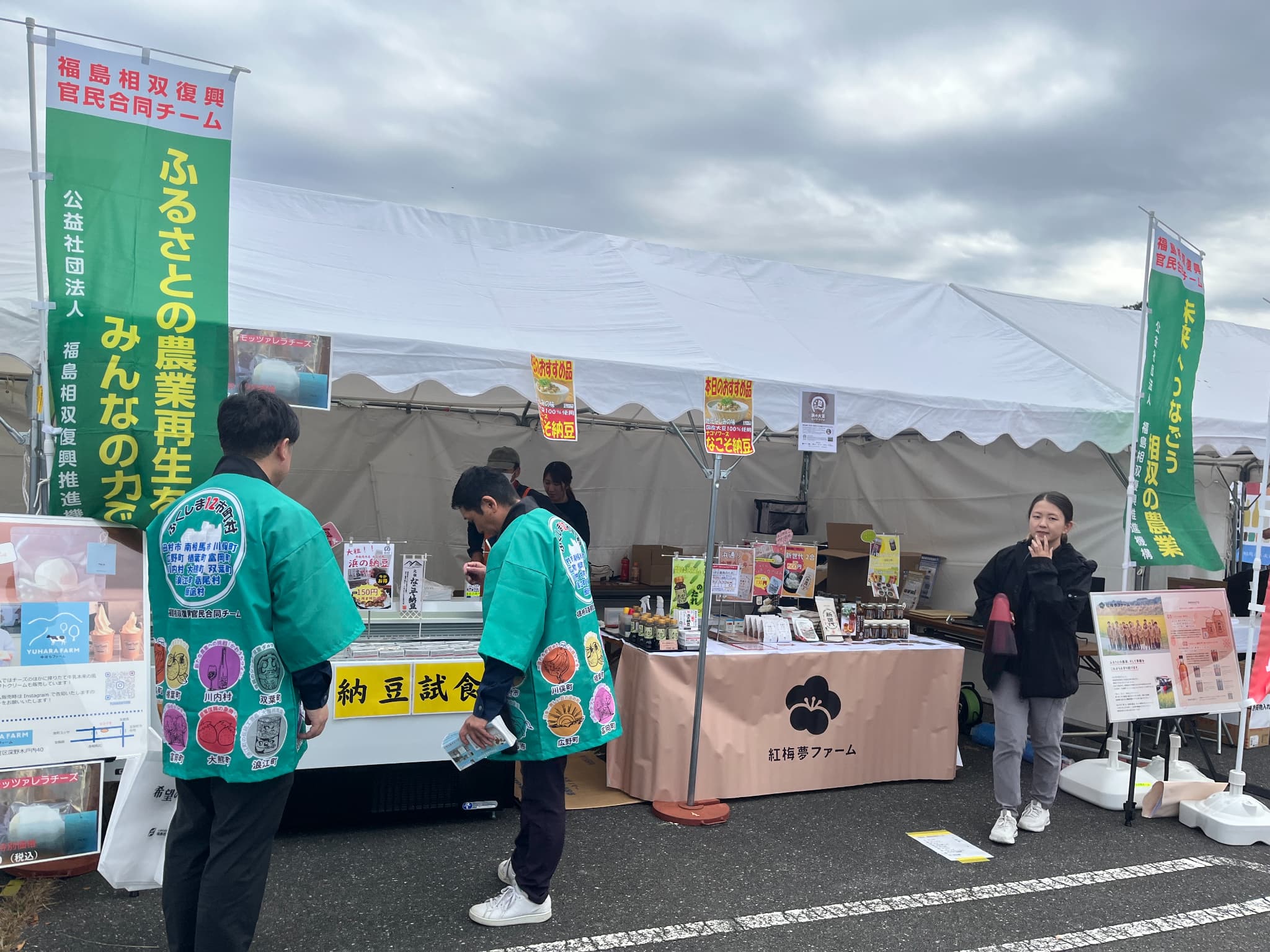出展内容は南相馬市で営農をされている㈱紅梅夢ファームさん、柚原ファームさん、Clean&Beeさんの6次化商品の販売です。