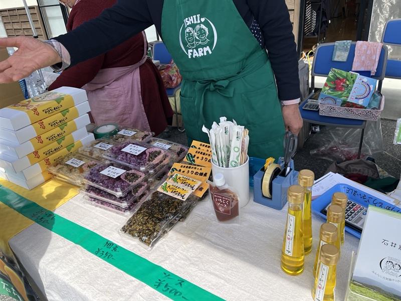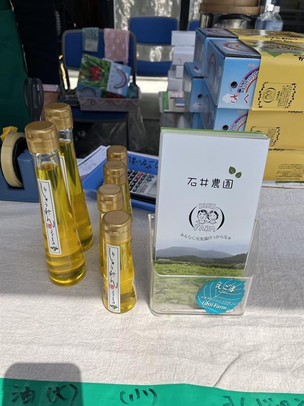 会場のつしま活性化センターでは、和太鼓の力強い演奏や歌のステージが響き渡り、多くの人の笑顔で包まれていました。外には、石井農園さまのえごま油の販売や手作りおこわなど、地域の魅力が詰まったフードブースも並び、津島の「おいしい」と「温かさ」を存分に感じられる一日でした。