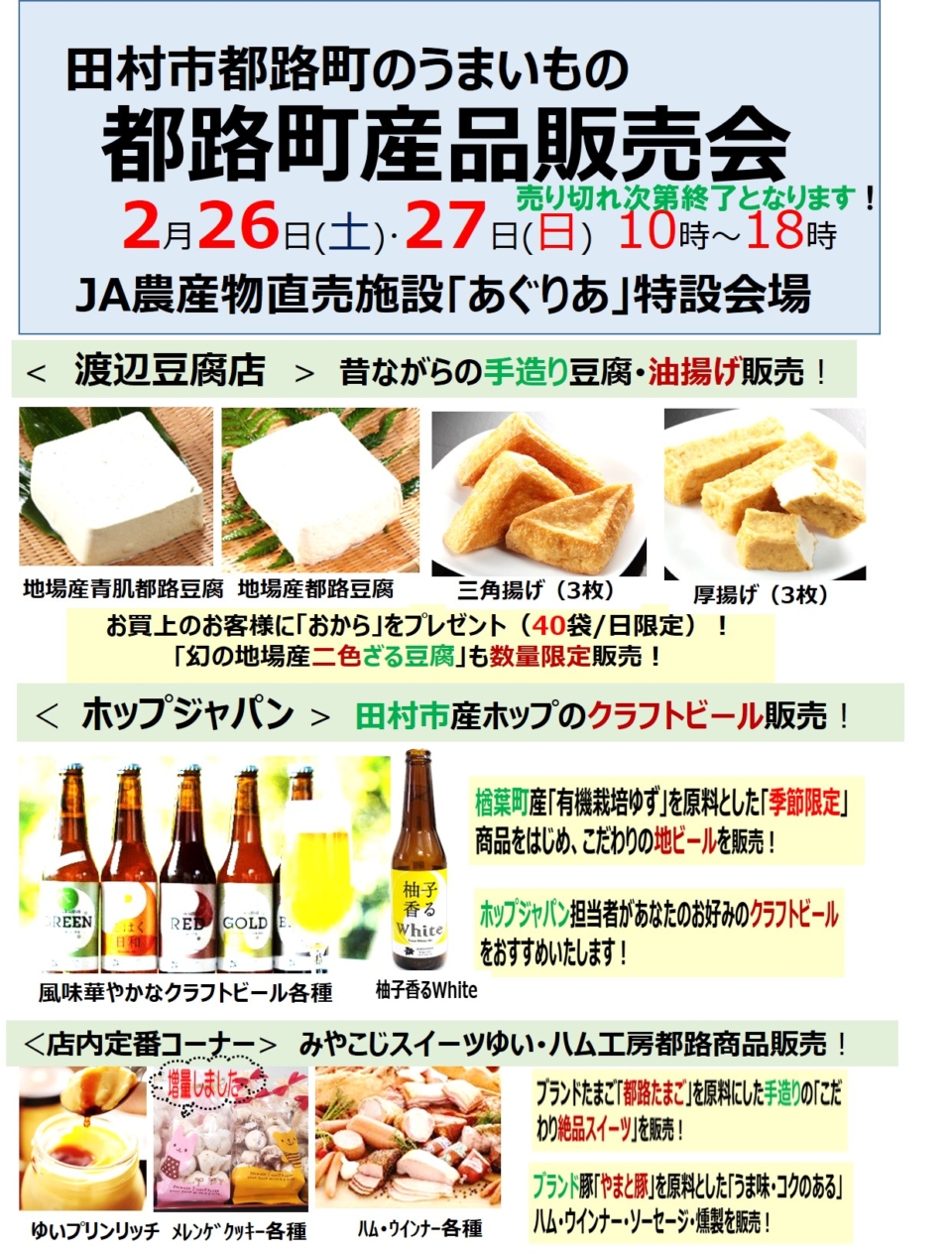 JA農産物直売施設「あぐりあ」特設会場において、都路町産品販売会が開催されます。