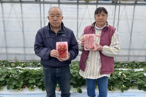 川内村の猪狩いちご園で、イチゴの収穫が最盛期を迎えました。