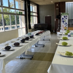秋の気配が薫る川内村コミュニティセンターにて、去る9月30日、「第4回川内村ぶどう品評会」が開催されました。川内村では現在、48戸の生産者がハウスぶどうの栽培に取り組んでおり、今回はその中から12名、計18品のぶどうが出品されました。